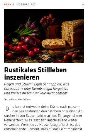 D u kannst entweder deine Küche nach passenden Gegenständen durchstöbern oder einen Abstecher in den Supermarkt machen. Ein angenehmer Nebeneffekt: Alles lässt sich anschließend weiter verwerten. Wenn du zu Hause fotografierst, ist das entscheidende Element, dass du das Licht möglichst gut kontrollierst. Ein bewährter Trick ist, das Fenster zunächst vollständig abzudunkeln und anschließend nur einen schmalen Schlitz im Vorhang offenzulassen, durch den ein gezielter Lichtstrahl einfällt. Das kann überraschend effektiv sein! Alternativ kannst du – wie ich es hier gemacht habe – mit künstlichem Licht arbeiten und gleichzeitig die Vorhänge komplett zuziehen, um den Großteil des Außenlichts auszublenden. Das LED-Licht war hell genug, sodass alles, was nicht von ihm beleuchtet wurde, im Dunkeln verschwand.