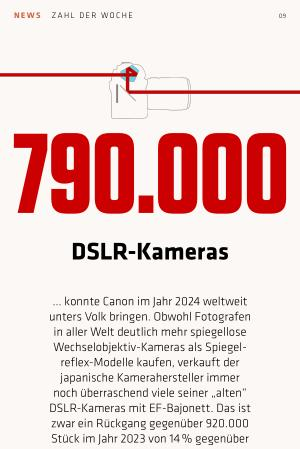 ... konnte Canon im Jahr 2024 weltweit unters Volk bringen. Obwohl Fotografen in aller Welt deutlich mehr spiegellose Wechselobjektiv-Kameras als Spiegelreflex-Modelle kaufen, verkauft der japanische Kamerahersteller immer noch überraschend viele seiner „ alten“ DSLR-Kameras mit EF-Bajonett. Das ist zwar ein Rückgang gegenüber 920.000 Stück im Jahr 2023 von 14 % gegenüber dem Vorjahr, aber immer noch erstaunlich. Denn es ist ja nicht gerade so, dass Canon sich besonders um den Absatz von DSLR-Kameras bemüht: Das Unternehmen hat zuletzt im Jahr 2020 eine neue DSLR vorgestellt.
