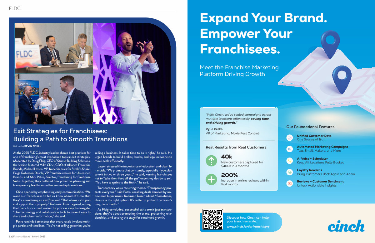 Lassen stressed the importance of education and clean financials. “We promote that constantly, especially if you plan to exit in two or three years,” he said, warning franchisees not to “take their foot off the gas” once they decide to sell. “You have to sprint to the finish,” he said.