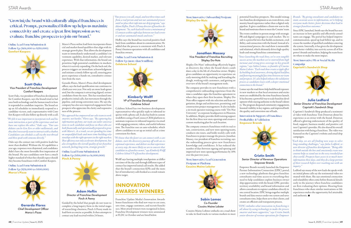 “ This approach has empowered our sales team to work smarter, not harder,” Flores says.“ By capturing key information up front, our team can tailor conversations to each candidate and focus on those who are both financially and operationally prepared to grow with Marco’ s. As a result, we are spending less time on unqualified leads and more time building relationships with the right operators in the right markets. That efficiency not only accelerates development, but also strengthens the overall quality of our franchise network, fueling long-term, strategic growth.”