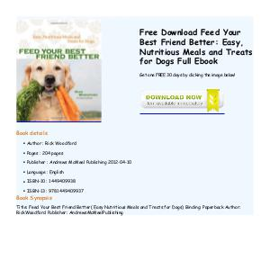 Free Download Feed Your Best Friend Better: Easy, Nutritious Meals and Treats for Dogs Full Ebook Get one FREE 30 days by clicking the image below!