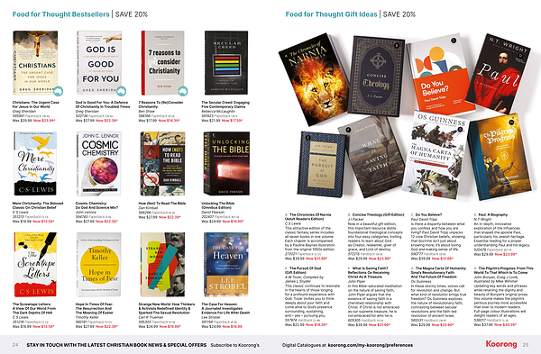 E The Pursuit Of God ( Gift Edition ) A W Tozer , Compiled by James L Snyder This classic continues to resonate in the hearts of those longing for a profound experience with God . Tozer invites you to think deeply about your faith and come alive to God ’ s presence surrounding , sustaining , and – yes – pursuing you . 557974 Hardback CL AW Was $ 22.99 Now $ 18.39 * |