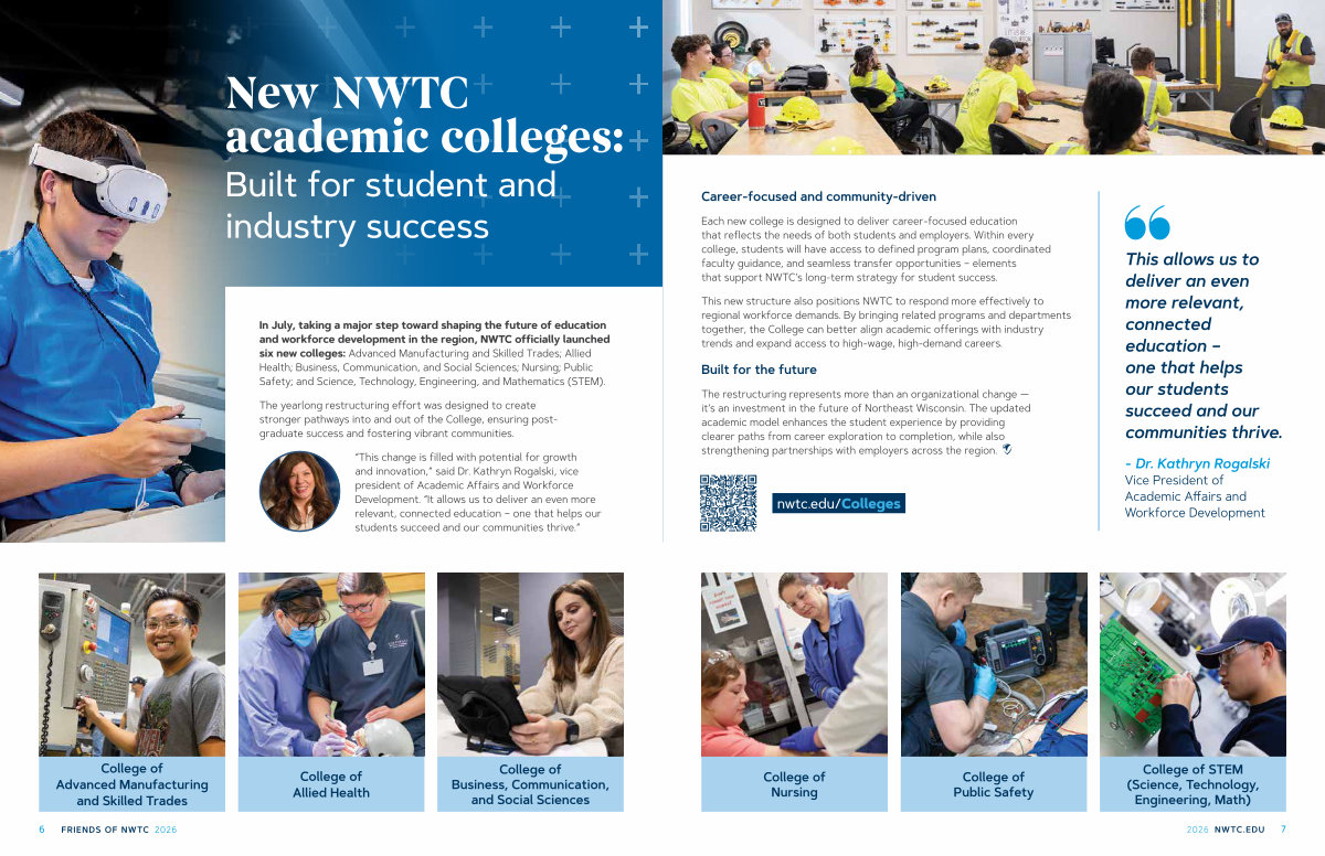 In July, taking a major step toward shaping the future of education and workforce development in the region, NWTC officially launched six new colleges: Advanced Manufacturing and Skilled Trades; Allied Health; Business, Communication, and Social Sciences; Nursing; Public Safety; and Science, Technology, Engineering, and Mathematics( STEM).