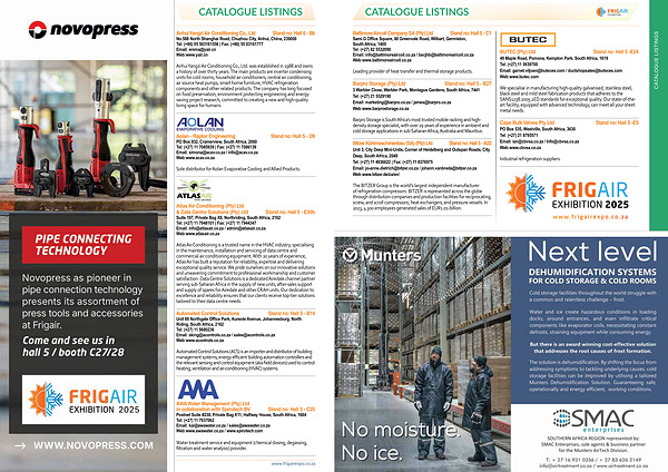 The BITZER Group is the world’ s largest independent manufacturer of refrigeration compressors. BITZER is represented across the globe through distribution companies and production facilities for reciprocating, screw, and scroll compressors; heat exchangers; and pressure vessels. In 2023, 4 300 employees generated sales of EUR1.01-billion. www. frigairexpo. co. za www. frigairexpo. co. za FRIGAIR 2025 | Official Catalogue