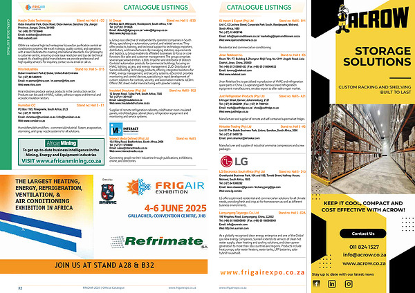 32 FRIGAIR 2025 | Official Catalogue www. frigairexpo. co. za