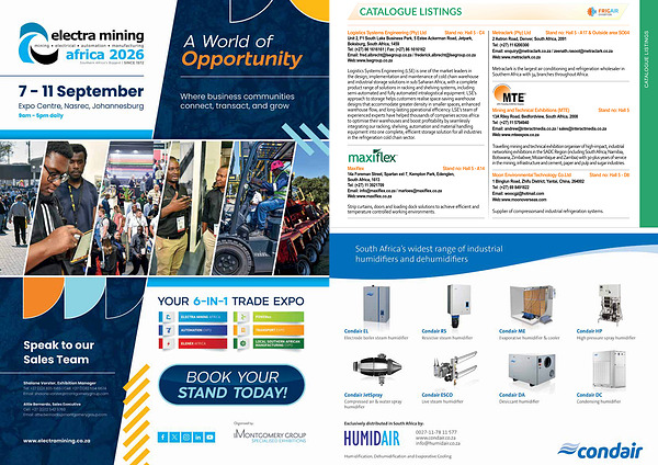 Travelling mining and technical exhibition organiser of high-impact, industrial networking exhibitions in the SADC Region( including South Africa, Namibia, Botswana, Zimbabwe, Mozambique and Zambia) with 30-plus years of service in the mining, infrastructure and cement, paper and pulp and sugar industries.