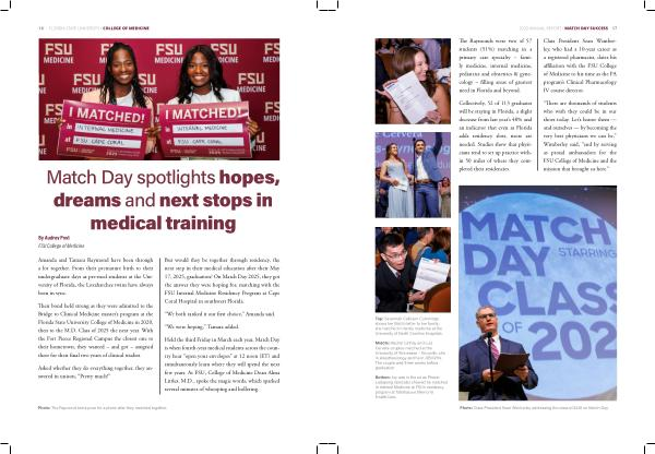 The Raymonds were two of 57 students( 51 %) matching in a primary care specialty – family medicine, internal medicine, pediatrics and obstetrics & gynecology – filling areas of greatest need in Florida and beyond.