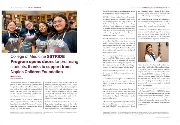 Kristen Dimas( M. D.,’ 16), a family medicine physician at Lee Health in Fort Myers and a core faculty member in the FSU Family Medicine Residency Program there, grew up in Immokalee. She became involved in the SSTRIDE program as an FSU undergraduate during the summer between her freshman and sophomore years. At that time, SSTRIDE was just a two-week program in Immokalee and Dimas got one of only two positions available to teach and mentor students on-site.