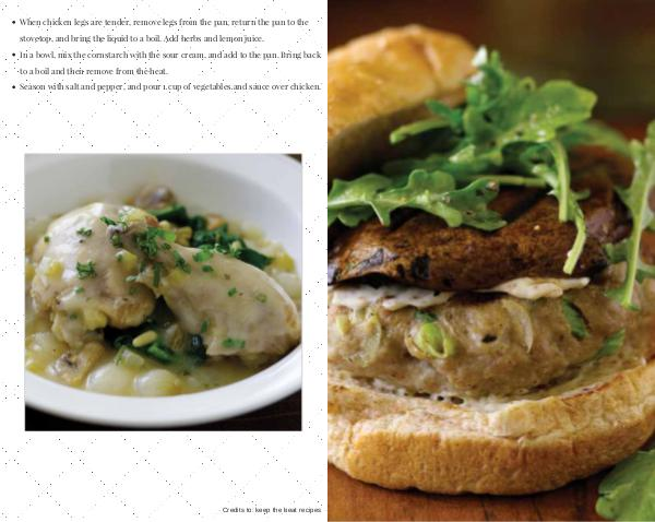 When chicken legs are tender, remove legs from the pan, return the pan to the stovetop, and bring the liquid to a boil. Add herbs and lemon juice. In a bowl, mix the cornstarch with the sour cream, and add to the pan. Bring back to a boil and then remove from the heat. Season with salt and pepper, and pour 1 cup of vegetables and sauce over chicken.