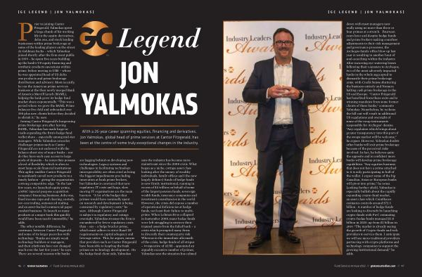 With a 26-year career spanning equities , financing and derivatives , Jon Yalmokas , global head of prime services at Cantor Fitzgerald , has been at the centre of some truly exceptional changes in the industry .