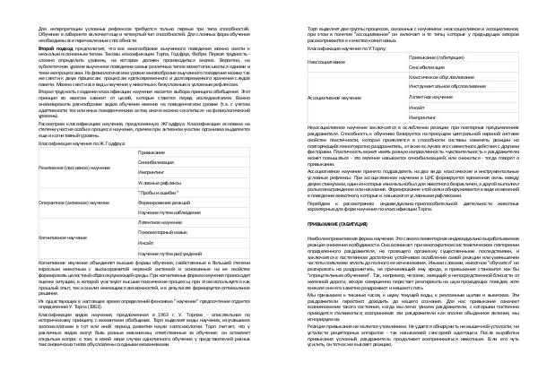характерных для форм научения по классификации Торпа.