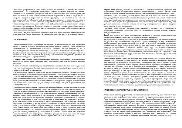 Сенсибилизацией называется повышение чувствительности организма к воздействию какого-либо агента. В качестве примера сенсибилизации можно привести аллергию, когда повышается чувствительность к определенным химическим стимулам, обычно безвредным, но у сенсибилизированных организмов способным вызывать целый комплекс патологический реакций. Сенсибилизацией называют три типа реакций, имеющих между собой мало общего. Главное, а может быть, и единственное, что их объединяет,- это повышение возбудимости организма по отношению к определенным раздражителям.
