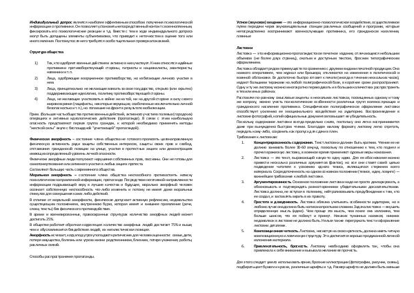 1. Концентрированность содержания. Текст листовки должен быть кратким. Чтение ее не должно занимать более 30-60 секунд, поскольку по отношению к тем, кто поднял и прочел вражескую листовку, в военное время применяют суровые меры наказания.