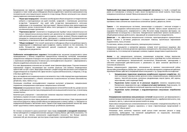 Основными способами неспецифического внушения выступают устрашение, эмоциональное подавление, инициирование агрессивных эмоциональных состояний.