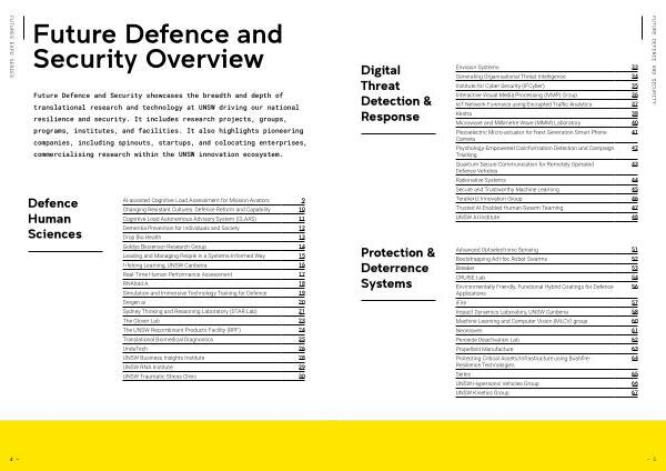 The Future Defence and Security Expo 2024 showcases UNSW research designed to bolster national resilience and social stability , centred on five critical areas .