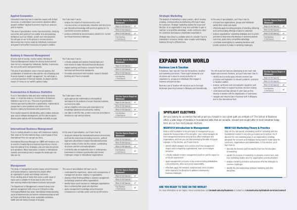 For more information on our majors , minors and electives , visit monash . edu . my / business or contact us at monash . edu . my / student-services / connect .