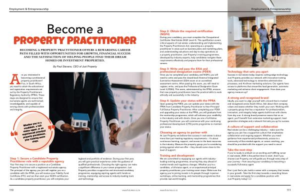 Don’ t just find a job; build a career with a company that invests in your growth. Take the first step towards a rewarding future in real estate and apply for a candidate position with Just Property today! www. futuresa. co. za 111