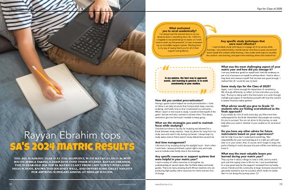 Ask for help if you don’ t understand something. Take responsibility for your own learning as it is a skill you will need later on in your career. And, of course, don’ t forget to enjoy the perks of being in matric because the year will be over before you know it.