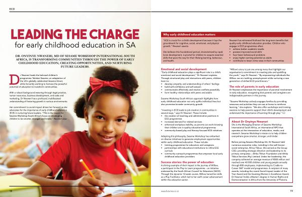 Her commitment to social impact drives her forward as she advocates for the importance of early childhood education( ECE) in nurturing future leaders.“ This is the reason for Sesame Workshop South Africa’ s focus on developing children to be smarter, stronger and kinder,” Nwaneri says.