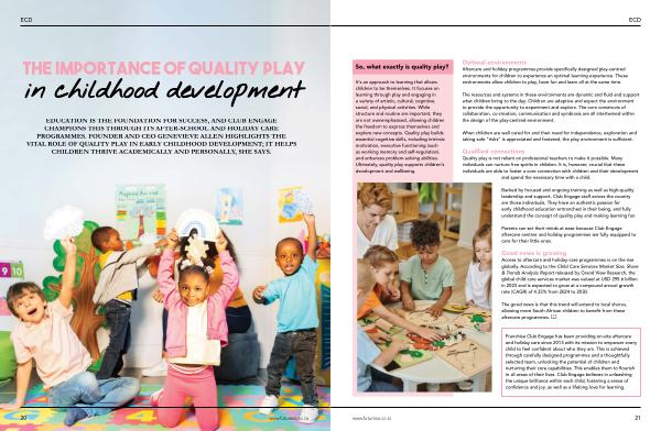 EDUCATION IS THE FOUNDATION FOR SUCCESS, AND CLUB ENGAGE CHAMPIONS THIS THROUGH ITS AFTER-SCHOOL AND HOLIDAY CARE PROGRAMMES. FOUNDER AND CEO GENEVIEVE ALLEN HIGHLIGHTS THE VITAL ROLE OF QUALITY PLAY IN EARLY CHILDHOOD DEVELOPMENT; IT HELPS CHILDREN THRIVE ACADEMICALLY AND PERSONALLY, SHE SAYS.