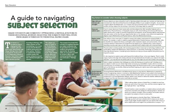 According to Ntshinga, while subject selection can feel overwhelming, it is a crucial process that will influence academic performance and future options. Therefore, it’ s essential that students carefully consider their choices, taking into account their individual strengths and interests. |