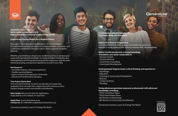 DISCOVER YOUR PURPOSE WITH CORNERSTONE INSTITUTE Higher Certificates | Undergraduate | Postgraduate