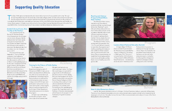 he City of Arlington emphasizes education as a vital component of a successful community. Through