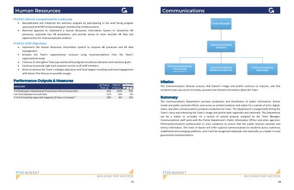 The Communications Department oversees production and distribution of public information , directs media and public outreach efforts , and serves as content producer and editor for a variety of print , digital , video , and other communications products created by the Town . The Department is charged with telling the Town ’ s story and enhancing the Town ’ s image and profile both regionally and nationally . The Department can be a leader or co-leader on a variety of special projects assigned by the Town Manager . Communications staff work with the Police Department ’ s Public Information Officer and other agencies ’ PIOs / communications professionals in crisis situations to ensure that the public receives accurate and timely information . The Town of Garner will offer superior communications to residents across numerous established and emerging platforms , and it will be recognized statewide and nationally as a leader in local government communications .