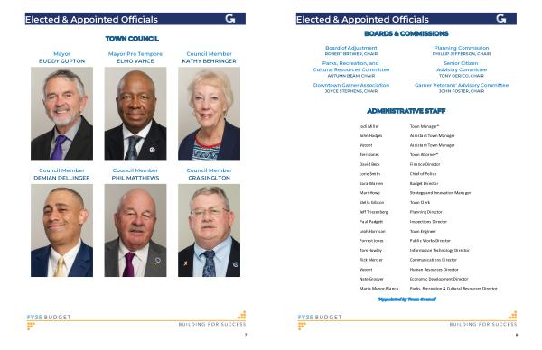 Finance Director Chief of Police Budget Director Strategy and Innovation Manager Town Clerk Planning Director Inspections Director Town Engineer Public Works Director Information Technology Director Communications Director Human Resources Director Economic Development Director Parks , Recreation & Cultural Resources Director