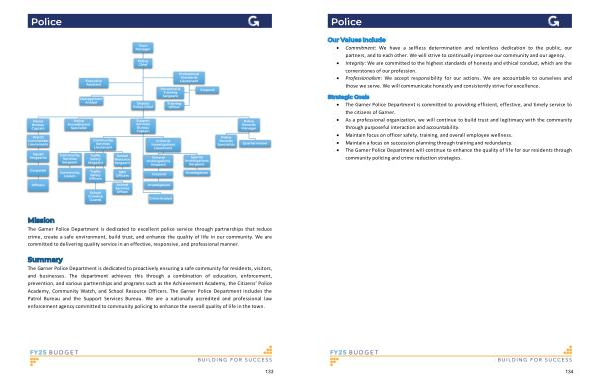 The Garner Police Department is dedicated to proactively ensuring a safe community for residents , visitors , and businesses . The department achieves this through a combination of education , enforcement , prevention , and various partnerships and programs such as the Achievement Academy , the Citizens ’ Police Academy , Community Watch , and School Resource Officers . The Garner Police Department includes the Patrol Bureau and the Support Services Bureau . We are a nationally accredited and professional law enforcement agency committed to community policing to enhance the overall quality of life in the town .
