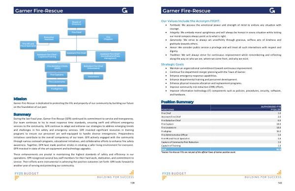 FY24-25 * Fire Chief 1.0 Assistant Fire Chief 3.0 Fire Battalion Chief 6.0 Fire Captain 18.0 Fire Lieutenant 18.0 Firefighter 36.0 Fire Administrative Officer 1.0 Fire HR and Fiscal Specialist 1.0 Captain of Community Risk Reduction 1.0 Captain of Training 1.0