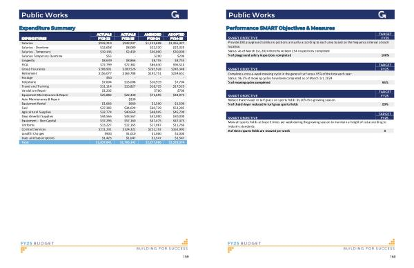 FY25 Provide 308 playground safety inspections annually according to each area based on the frequency interval at each location . Status : As of March 1st , 2024 there have been 254 inspections completed % of playground safety inspections completed 100 %