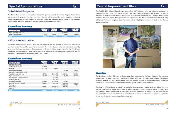 The FY 2025 – 2029 Adopted Capital Improvement Plan ( CIP ) builds on prior year efforts to enhance the Town ’ s long-term capital planning capabilities . The Town continues to utilize the revised CIP process designed to allow staff from multiple departments to collaborate and provide input on their requirements and how decisions impact their operations . This input allows for the development of a CIP which fully addresses the Town ’ s long-term capital requirements and highlights the future impacts to the Town ’ s operating budget .