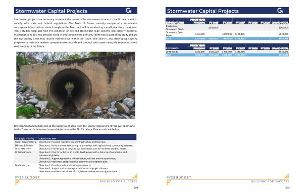Development and completion of the Stormwater projects in the Capital Improvement Plan will contribute to the Town ’ s efforts to meet several objectives in the 2016 Strategic Plan as outlined below :