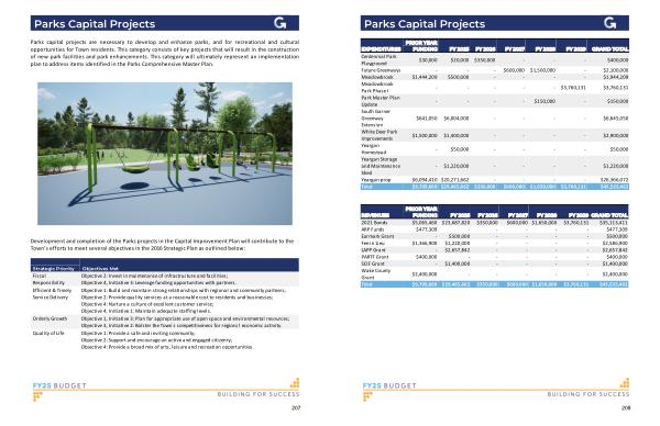 Development and completion of the Parks projects in the Capital Improvement Plan will contribute to the Town ’ s efforts to meet several objectives in the 2016 Strategic Plan as outlined below :