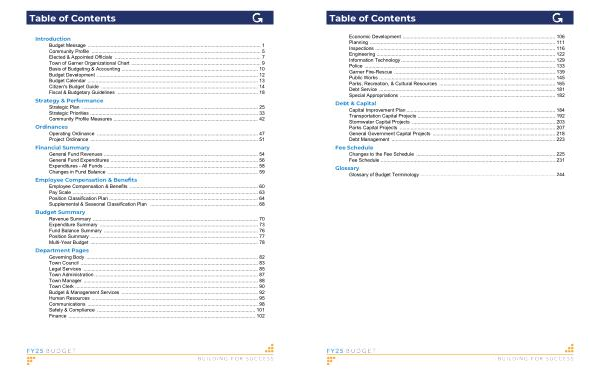 Department Pages Governing Body .............................................................................................................................. 82 Town Council .................................................................................................................................. 83 Legal Services ................................................................................................................................ 85 Town Administration ........................................................................................................................ 87 Town Manager ................................................................................................................................ 88 Town Clerk ...................................................................................................................................... 90 Budget & Management Services .................................................................................................... 92 Human Resources .......................................................................................................................... 95 Communications ............................................................................................................................. 98 Safety & Compliance .................................................................................................................... 101 Finance ......................................................................................................................................... 102