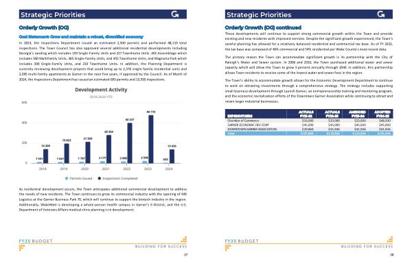 Goal Statement : Grow and maintain a robust , diversified economy In 2023 , the Inspections Department issued an estimated 2,500 permits and performed 48,110 total inspections . The Town Council has also approved several additional residential developments including Georgia ’ s Landing which includes 193 Single-Family Units and 227 Townhome Units . 401 Assemblage which includes 500 Multifamily Units , 365 Single-Family Units , and 455 Townhome Units , and Magnolia Park which includes 390 Single-Family Units , and 210 Townhome Units . In addition , the Planning Department is currently reviewing development projects that could bring up to 2,576 single-family residential units and 2,095 multi-family apartments to Garner in the next five years , if approved by the Council . As of March of 2024 , the Inspections Department has issued an estimated 693 permits and 13,935 Inspections .
