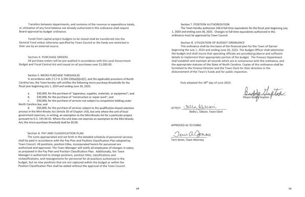 The Town hereby authorizes 246.0 full-time equivalents for the fiscal year beginning July 1 , 2024 and ending June 30 , 2025 . Changes to full-time equivalents authorized in this ordinance must be approved by Town Council .