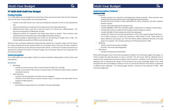 Model Assumptions The FY 2025 – 2029 multi-year budget is based on several assumptions about growth in both revenue and expenditures :
