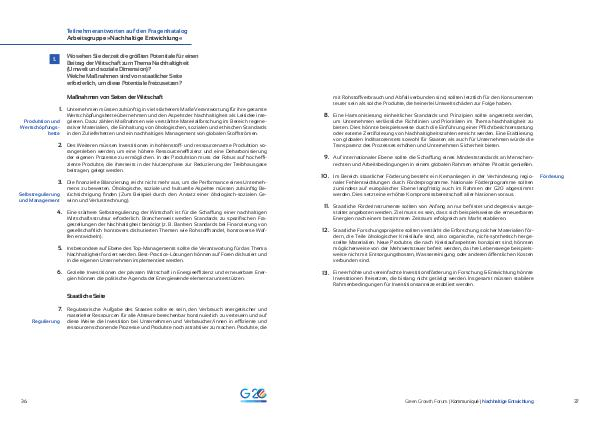Green Growth Forum | Kommuniqué | Nachhaltige Entwicklung