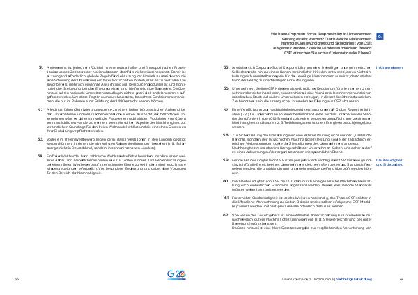 61. Für erhöhte Glaubwürdigkeit ist es des Weiteren notwendig, das Thema CSR stärker in