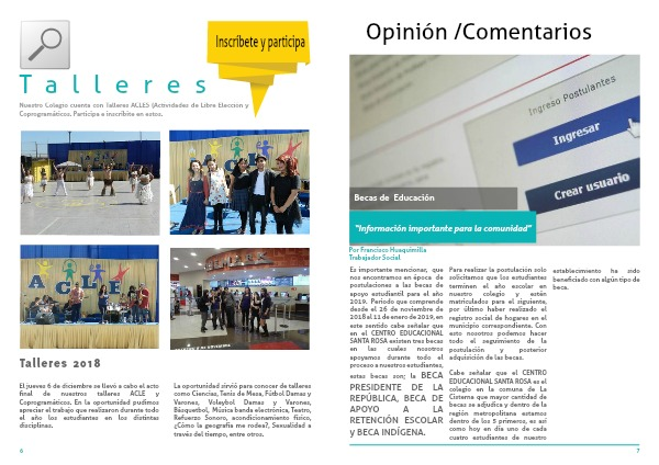 Es importante mencionar, que nos encontramos en época de postulaciones a las becas de apoyo estudiantil para el año 2019. Periodo que comprende desde el 26 de noviembre de 2018 al 11 de enero de 2019, en este sentido cabe señalar que en el CENTRO EDUCACIONAL SANTA ROSA existen tres becas en las cuales nosotros apoyamos durante todo el proceso a nuestros estudiantes, estas becas son; la BECA PRESIDENTE DE LA REPÚBLICA, BECA DE APOYO A LA RETENCIÓN ESCOLAR y BECA INDÍGENA.