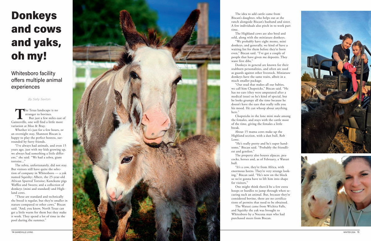 The Watusi came from Wichita Falls, and Squishy the yak was brought to Whitesboro by a Nocona man who had purchased steers from Biscan.