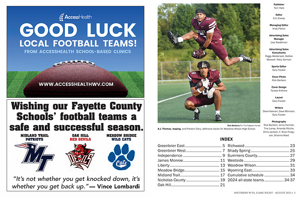 Richwood............................................. 23 Shady Spring....................................... 25 Summers County................................. 27 Westside.............................................. 29 Woodrow Wilson.................................. 31 Wyoming East...................................... 33 Cumulative schedule.......................... 34 2024 all-state teams.................... 34-37