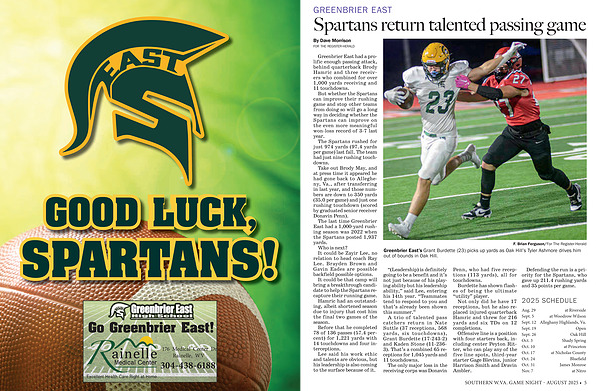 The last time Greenbrier East had a 1,000-yard rushing season was 2022 when the Spartans posted 1,937 yards. Who is next? It could be Zayir Lee, no relation to head coach Ray Lee. Brayden Brown and Gavin Eades are possible backfield possible options.