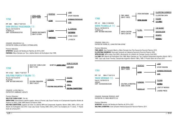 Premios Obtenidos : SPORTIVO : Ganador del Ranking de Padrillos de 2014 a 2021 . FANTASIA : Mejor Ejemplar por Tipo y Aptitud Abierto del Hurlingham Club 1999 .