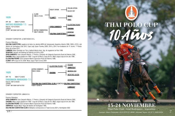 Premios Obtenidos : OPEN CHIMENTO : Gran Campeón Macho , 1 º Premio y Campeón de Categoría Exposición Rural de Palermo 2005 . CHUSMA : Mejor yegua jugadora en 1995 - Copa de la Reina y Copa de Oro , Mejor yegua Copa de Oro año 1996 . ELLERSTINA PÍCARO : Gran Campeón Macho Exposición Rural de Palermo 1998 . SIMPATICA : Elegida Mejor Yegua del Abierto de Hurlingham 1995 . DOLFINA B04 CUARTETERA CLON 4 : Múltiples nominaciones en Triple Corona 2021 y Hurlingham 2022 .
