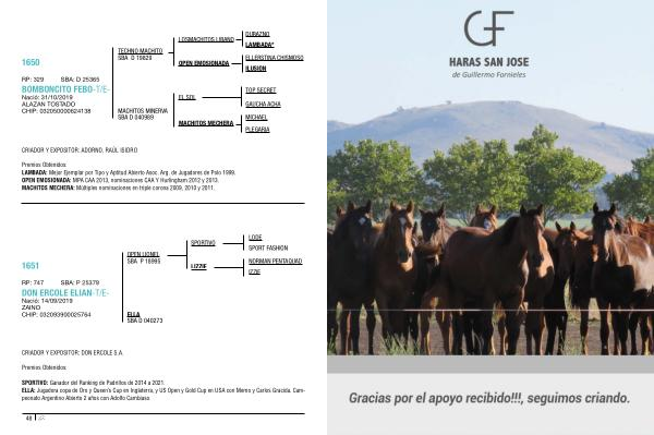 Premios Obtenidos : LAMBADA : Mejor Ejemplar por Tipo y Aptitud Abierto Asoc . Arg . de Jugadores de Polo 1999 . OPEN EMOSIONADA : MPA CAA 2013 , nominaciones CAA Y Hurlingham 2012 y 2013 . MACHITOS MECHERA : Múltiples nominaciones en triple corona 2009 , 2010 y 2011 .
