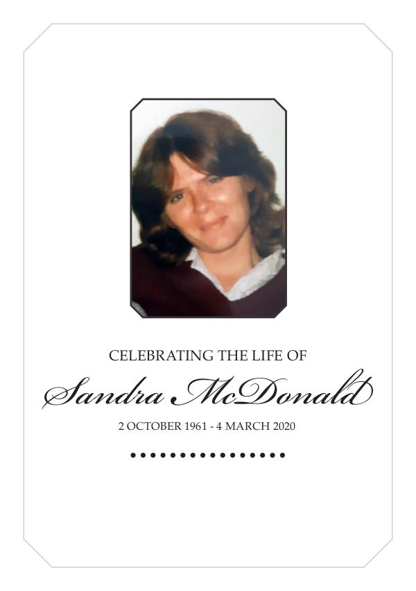 Sandra McDonald CELEBRATING THE LIFE OF 2 OCTOBER 1961 - 4 MARCH 2020