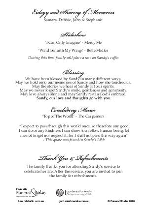Gardenia Funerals Sandra McDonald Order of Service Booklet Joomag | Page 4